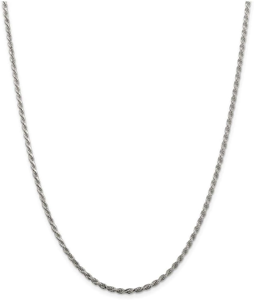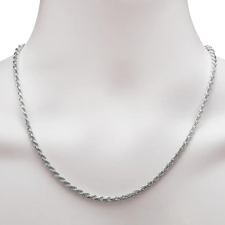 Sterling Silver 2.25mm Shiny-Cut Rope Chain Necklace For Men.